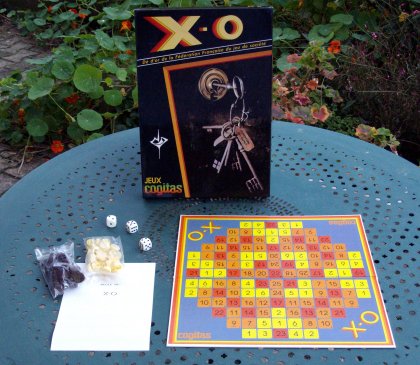 X-O est le Dé d'Or 1986 de la Fédération Française du jeu de société. Une récompense totalement méritée par un jeu qui, s'il a disparu de nos étals, n'a pas du tout vieilli. Le principe de base est d'arranger les trois dés qui sont lancés pour obtenir un nombre, puis d'occuper une case portant ce nombre avec un de ses jetons. Quand on parvient à occuper cinq cases alignées à la suite, orthogonalement ou diagonalement, on marque le total des points des cases occupées. Plusieurs règles sont proposées et les joueurs peuvent convenir d'un objectif : aligner en premier cinq cases, parvenir le premier à un score donné, ne pas tenir compte de la valeur des cases, etc. La façon certainement la plus intéressante est de jouer à deux, ou deux équipes de deux, et de jeter les dés une seule fois par tour. Tous les joueurs doivent alors arranger les trois mêmes dés pour obtenir un nombre qui leur convient. Avis aux collectionneurs et amateurs de jeux mythiques : Sophie Vieux, la fille de Claude Vieux, possède encore quelques boîtes de X-O… Son adresse de courrier électronique :
