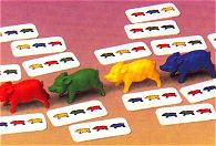 1, 2, 3, gagné, vous l'aurez compris, est un jeu plutôt destiné au jeune public. La difficulté est réelle pour les enfants (et pour certains adultes, mais ne me demandez pas leurs noms). Cependant, les parents joueront avec plaisir à un petit jeu rapide, mignon, et pas dénué d'intérêt, dans lequel le hasard n'intervient plus, une fois les cartes distribuées. On peut facilement imaginer des règles pour les plus grands, ainsi que des adaptations pour créer des formules de handicap. Un jeu de cochons |