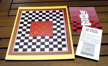 Le Siège de Paris est un jeu d'échecs non orthodoxe. Les forces des assiégeants et de l'assiégé sont différentes, le but du jeu est également différent. Le tablier de jeu comporte au centre la garnison, où se trouvent au départ les assiégés. Une curiosité agréable à jouer. Le jeu date de 1871 et fait directement référence aux événements de la Commune. La reproduction du jeu original est proposée dans le recueil 12 Jeux et leur support. |