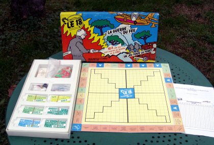 Dans Le 18 - La Guerre du feu, vous jouez un maire qui doit aménager sa commune pour la protéger des incendies. Les autres joueurs doivent faire de même, mais passent généralement leur temps à aviver les brasiers sur vos terrains ! Trois niveaux de jeu, avec une part croissante de décisions à prendre, permettent de sensibiliser jeunes et moins jeunes à la prévention. Les mécanismes sont classiques et ne s'adressent pas aux joueurs chevronnés, qui risquent de trouver la part du hasard trop déterminante. |