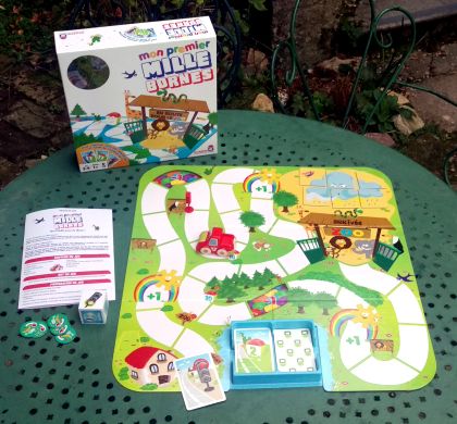 Le classique 1000 Bornes est un des premiers jeu d'attaque défense, synonyme d'interaction. L'idée de l'adapter en jeu coopératif est donc assez curieuse. La mécanique de 1000 Bornes - Mon premier Mille Bornes - En route pour le zoo est élémentaire : on tire une carte et on avance la voiture commune d'autant de case qu'indiqué. Parfois, on est bloqué par un feu rouge. Et en tentant de le débloquer à l'aide du gros dé, on peut provoquer l'orage qui mettra fin à la partie. Rien de bien nouveau, donc, mais un matériel de jeu solide et un jeu coopératif qui plaira aux parents et, parait-il, aussi aux enfants qui, comme le prétend la règle, « n'aiment pas s'attaquer les uns les autres ».