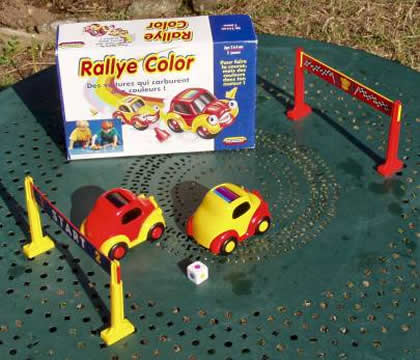 1994 : Rallye Color chez HabourdinRallye Color semblera aux adultes un jeu de hasard pur. En fait il s'agit d'un jeu de reconnaissance des couleurs, fonctionnant sur le même principe que La Chenille de course Rosalie.