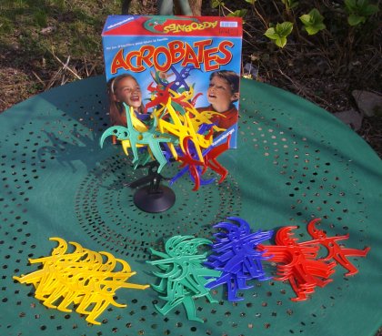 Acrobates est encore un grand jeu classique signé Theo et Ora Coster. Les premières boîtes datent de 1970, tout comme les « Icestix » conçus dans la même veine. Les Icestix étaient ces fameux bâtons d'esquimau qui se transformaient, après un méticuleux nettoyage buccal, en éléments de jeu de construction.