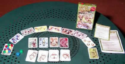 Affentheater est un mélange de jeu de hasard, de mémoire et de mime. On trouve même un peu de « stop ou encore ».