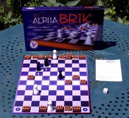 Comme tout jeu alliant réflexion et hasard, Alpha brik laisse croire à chaque joueur qu'il peut gagner la partie sur une bonne séquence de dés. Mais il ne faut pas s'y tromper : le tacticien gagnera plus souvent qu'à son tour. Plusieurs règles sont proposées quant à la fin de partie : temps limité ou objectif de conquête totale. La règle que je préfère est, comme souvent, la plus rapide : la partie est terminée dès que la dernière brique du centre est capturée. Le vainqueur est alors celui qui possède le plus de briques dans son camp. Variante Escale à jeuxAu lieu de ranger les briques sur la dernière rangée, on peut laisser les joueurs libres de ranger les briques comme ils le souhaitent sur les cases de leur camp, soit les cinq premières rangées. Ils peuvent même les empiler si tel est leur souhait, au risque de se faire voler plusieurs briques d'un coup. |