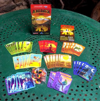 Une règle de jeu pourrait se résumer à deux éléments essentiels : le but à atteindre et les contraintes posées par l'auteur pour nous compliquer la vie. Dans Animix Park, ce sont les contraintes originales qui donnent son intérêt au jeu. Pour marquer des points, il faut à la fois posséder un maximum d'animaux d'une espèce à la fin de la partie, et que cette même espèce soit en quantité et en disposition intéressantes sur le tableau central. Le dilemme, vous l'avez compris, c'est que pour prendre la majorité sur une espèce, il faut souvent retirer une carte de celle-ci du tableau. Tout l'art est dans l'équilibre. Côté présentation, Animix Park propose huit espèces joliment illustrées et dotées de caractéristiques différentes, ce qui permet de renouveler sans cesse les parties puisqu'on en utilise toujours que quelques unes, par exemple, cinq au choix quand on joue à quatre joueurs.