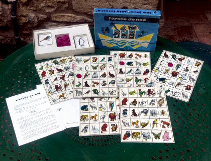 L’Arche de Noé est un d'abord un classique jeu de Loto où les nombres ont été remplacés par des images d'animaux. Une règle plus intéressante est également proposée, faisant appel à l'observation rapide. Un joueur retourne une à une et assez rapidement les cartes, puis les recouvre avec la carte suivante. Chacun essaye alors de trouver l'animal sur sa carte pour y placer un jeton. Lorsqu'un joueur pense avoir créé une ligne, il l'annonce puis on vérifie en regardant les cartes tirées.