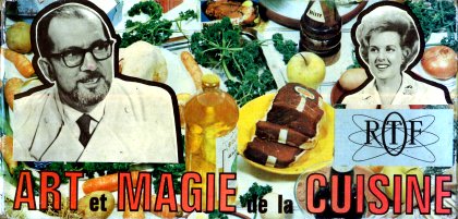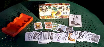 La seconde règle, Cuisine tiercé, s'apparente plus au Rami. Mais il faut faire les plats dans l'ordre. Hors de question de présenter la tarte aux pommes avant le soufflé ! J'avoue ne pas être insensible au côté kitsch du jeu. Sur la boîte, on reconnaît Raymond Oliver et Catherine Langeais. Un peu d'histoireArt et magie de la cuisine est la première émission de télévision consacrée à la cuisine en France. En 1953, l'O.R.T.F. demande à Raymond Oliver Dans leur livre Histoire de la télévision française, Jacques Mousseau et Christian Brochand disent à son propos : « Le succès est immédiat, d'autant qu'Oliver ne manque ni de talent culinaire ni de verve. Il fait de ses recettes provinciales des événements parisiens, soulignant que « Paris, c'est le creuset, la consécration ». Raymond Oliver aura inauguré une histoire d'amour entre la télévision et la cuisine, qui ne s'est jamais démentie au fil du temps ». Source : Le guichet du savoir |