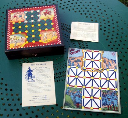 Les soldats essayent d'occuper la citadelle avec neuf d'entre eux ou s'ils parviennent à bloquer les officiers. Ils ne peuvent qu'avancer (c'est ça la chair à canon). Les officiers gagnent s'ils capturent seize soldats (il n'en reste donc que huit). L'intérêt du jeu réside surtout dans son côté historique, et dans le rapport de forces inégal. On lira à ce sujet l'intéressant billet de Gilles Lehmann : Le Sens du jeu. FestungDans le hors-série de Science et Vie consacré en 1978 aux jeux de réflexion, la version présentée était le Festung de Noris Spiele (voir plus bas). Jeux d'assaut plus anciens