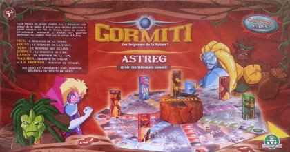 Astreg - Le Défi des seigneurs Gormiti, ça ressemble au Jeu des petits chevaux, en malheureusement moins intéressant ! Les joueurs lancent les dés pour arriver au centre et déterminer deux finalistes qui se livreront un intense combat de dés. Un jeu dispensable.