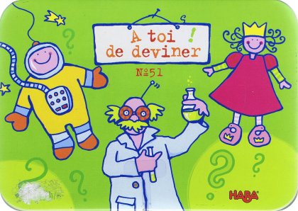 À toi de deviner reprend le principe de Que suis-je ? et Amnésia. Il s'agit en effet de deviner qui on est : personnage, animal ou objet. On joue à tour de rôle, et il n'y a qu'un seul bandeau. Pour gagner la carte collée sur son front, il faut poser des questions ou proposer des solutions. Au bout de dix réponses négatives, on a perdu son tour et sa carte.