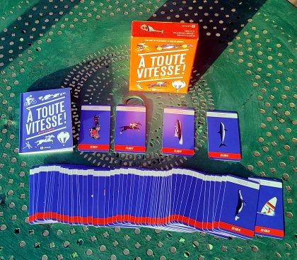 Alors que Timeline ou Chronicards nous proposent de classer des événements historiques selon leur date, À toute vitesse nous demande de classer des cartes selon la vitesse de ce qui y est représenté. La valeur prise en compte est la vitesse moyenne. Par exemple, la bicyclette est annoncée à 20 km/h alors que mon cousin Alfred peut faire des pointes à 30 km/h en descente ! Le jeu est amusant et instructif, mais les règles ne sont guère imaginatives et on aura vite fait le tour des 66 cartes.