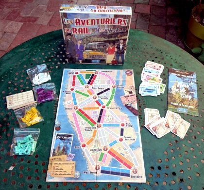 Les Aventuriers du rail - New York est une version ultra-allégée de son aïeul Les Aventuriers du rail : tronçons ne dépassant pas 4 véhicules et1seulement 15 pions par joueur pour des parties ne dépassant pas le quart d'heure. L'esprit du jeu est toujours là, mais les décisions sont d'autant plus cruciales que la partie est courte. Inutile d'amasser des cartes alors qu'on ne pourra en jouer que quinze au maximum. La prise de joker est du coup plus à envisager que dans le jeu original. Le jeu parfait pour initier vos apprentis joueurs sans prise de tête et sans les effrayer avec une longue durée.