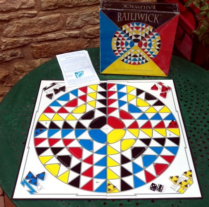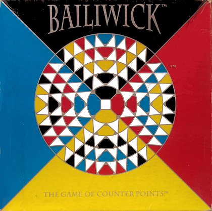 Bailiwick est un jeu de poursuite entre pions avec quelques particularités due à son tablier original. Les pions peuvent se déplacer dans tous les sens selon les couleurs des cases. Anecdotique.