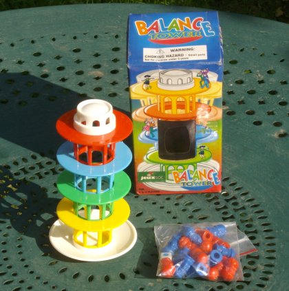Celle-ci est originaire de Hong-Kong et l'éditeur ne s'est pas foulé pour écrire la règle : « On jette le dé, on place un bonhomme à l'étage indiqué par le dé. Si on fait tout tomber, c'est le joueur précédent qui a gagné ». Bof bof… |