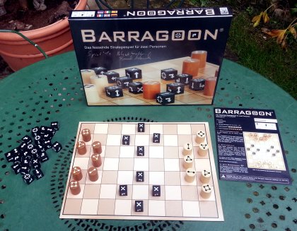 Barragoon oppose deux stratèges. Pour gagner, il faut, soit capturer tous les pions adverses, soit placer l'adversaire dans l'impossibilité de jouer. L'originalité vient des dés noirs qui sont des obstacles ou des contraintes de déplacement. Plus le jeu avance, plus le tablier se trouve encombré. les déplacement deviennent difficiles. Les pièces à longue portée, quand elles se retrouvent confinées, n'ont plus d'effet. Les pièces à plus faible déplacement sont aussi les plus mobiles, mais elles sont limitées dans les prises. Les amateurs de jeu combinatoire devraient apprécier ce jeu intelligent.