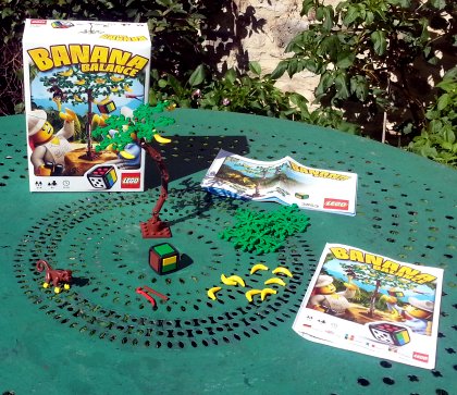 La petite boîte de Banana Balance contient un petit jeu d'équilibre. Le dé détermine l'action du joueur actif. Il doit ajouter ou prélever des bananes, et parfois ajouter des feuilles. On rappellera que le bananier