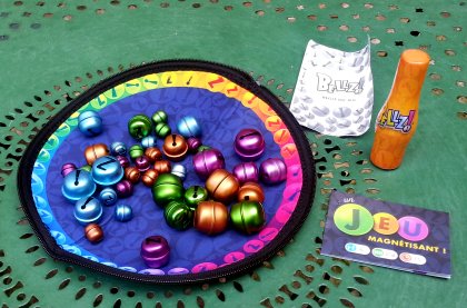 Difficile à Bellz! de passer inaperçu. La jolie petite trousse attire l'œil et si on cherche à la cacher, les grelots signalent aussitôt la présence du jeu.