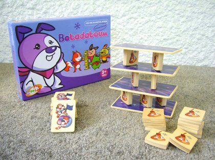 Les jeux d'équilibre existent probablement depuis la nuit des temps. Seule l'idée de les mettre en boîte appartient à l'histoire récente. Bobadaboum s'adresse aux très jeunes joueurs, à partir de 3 ans. Le jeu est donc volontairement simple et ne posera pas de difficulté à un joueur adulte, mais ce n'est pas son but. L'idée est d'empiler successivement modules spatiaux et mini-plateaux. La base des modules est arrondie. Les jeunes stratèges s'apercevront progressivement qu'en plaçant tous les modules dans le même alignement, l'équilibre est plus instable qu'en diversifiant les assises.