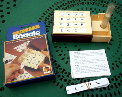Dans Boggle, il faut trouver le plus de mots possible dans un temps donné. Rapidité et maîtrise du vocabulaire sont nécessaires. Dans le même genre, en plus dynamique, il faut essayer Pêcheurs de mots. 1994 : Big Boggle ou Boggle Master