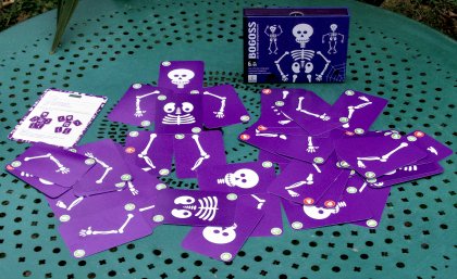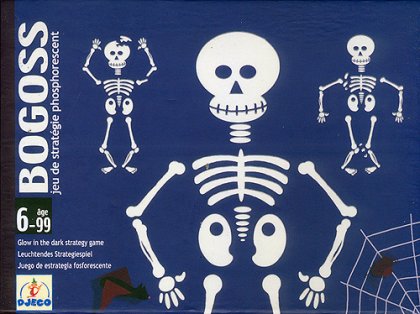 Bogoss est un dérivé amusant du jeu de 7 Familles. La nouveauté, c'est qu'il n'existe que deux familles : les squelettes en bon état (5 × 6 cartes), et les squelettes brisés (2 × 6 cartes). On demande à tour de rôle des cartes aux adversaires, et ceux-ci nous donnent soit un morceau brisé soit un morceau en bon état. Pour gagner, il faut soit réunir deux squelettes complets en bon état, ou alors un seul composé d'os cassés. Heureusement, il y a deux jokers. Le jeu gagne terriblement à être joué dans le noir absolu. Les cartes sont en effet phosphorescentes.