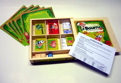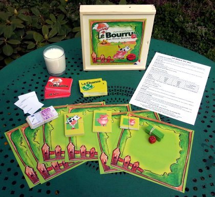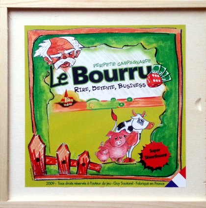 Guy Sautarel est un ancien facteur qui consacre sa retraite à sa collection de voitures miniatures. Il a eu l'idée d'un jeu simple et familial sur le thème de l'élevage et de ses aléas. Il le vend sur les marchés de l'Ain et de la Saône-et-Loire. Le Bourru ne prétend pas révolutionner le monde ludique : les tirages de dé ou de cartes ponctuent en effet toutes les parties. Quelques décisions sont cependant à prendre, mais elles sont rarement décisives. L'idée est de parvenir à posséder six vaches dans son pré, en ayant remboursé son éventuel emprunt. Pour cela, on peut prendre une voie prudente, en achetant d'abord des cochonnets qui deviendront des cochons et prendront de la valeur, mais c'est long. La voie rapide consiste à acheter directement une vache, mais elle est chère. Les gains proviennent un petit peu de la vente du lait, et beaucoup de votre chance au tirage de cartes. Lorsqu'un joueur semble en passe de gagner, il est urgent de lui envoyer un maximum d'embûches en payant le « bourru », personnage malfaisant qui sévit dans toutes les campagnes. Vous trouverez, dans la règle téléchargeable, une petite variante maison qui ajoute un petit peu de décision sans dénaturer le jeu, résolument simple et familial.