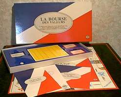 Visiblement conçu comme un cadeau publicitaire - le jeu est bardé d'enseignes commerciales - La Bourse des valeurs ne reproduit aucunement les lois des marchés, mais s'apparente plutôt à un long et fastidieux tirage de cartes « Chance ». Curieusement, le jeu est censé se passer en mai 1988. Personnellement, mes préférences se porteraient davantage vers celles de mai 1968. |