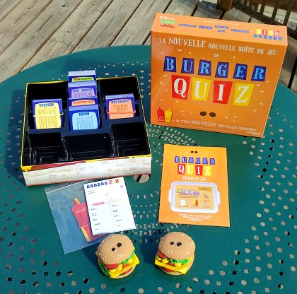 Le souci avec les quiz basés sur l'actualité, c'est que justement, l'actualité ça bouge tout le temps. Burger Quiz - La Nouvelle Nouvelle Boîte de jeu est donc la version 2021 du Burger Quiz initialement publié par Lansay et réédité à plusieurs reprises. Rien de nouveau dans le mode de jeu, mais des questions plus actuelles.