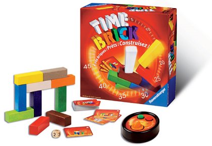Le joueur dont c'est le tour doit reconstituer les constructions présentées sur les cartes pendant que le chrono tourne. Le temps dont il dispose est déterminé au hasard, et les cartes sont plus ou moins difficiles. Le jeu est donc profondément injuste, ce qui ajoute encore un peu à son charme. 2007 : Time BrickUn peu moins de cartes, les mêmes blocs, un nouveau titre, passage de quatre à six joueurs, et voici un nouveau jeu !