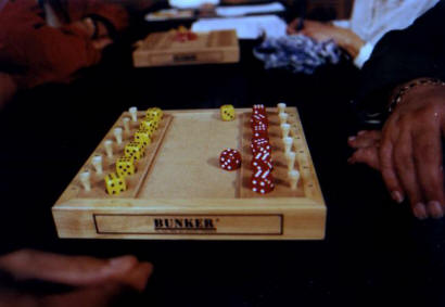 Vous devez trouver le jeton caché par chaque adversaire sous l'un de ses quatre dés. À chaque tour, vous avez le choix entre baisser la protection d'un dé adverse, monter la vôtre ou soulever un jeton dénudé. Bien sûr, le jeu à quatre se révèle un jeu d'alliance, où le joueur jugé le plus habile voit se liguer contre lui l'ensemble des trois autres joueurs. |