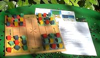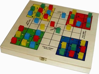 Carré 2000 existe en deux versions : la petite version avec neuf pions par joueur, et la grande version avec vingt-cinq pions par joueur. La petite version, que je possède maintenant (merci Henri !), permet des parties d'environ une demi-heure.