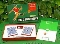 Les Canonniers est un jeu des éditions Edmond Dujardin de 1965, breveté S.G.D.G. Le mécanisme est celui d'un jeu de cartes à poser, avec des attaques et des défenses. On peut jouer à deux ou à plus, en deux équipes. Le tablier de jeu est réduit à sa plus simple expression, avec le rond de mise en jeu et les deux camps. Pour marquer, il faut poser une série de cartes adéquates, par exemple « Passe », « Tir au but », « But ». Mais l'adversaire pourra riposter en jouant « But refusé ». Il n'en disposera pas toujours.