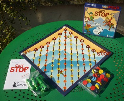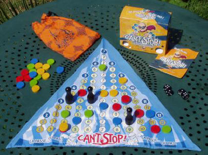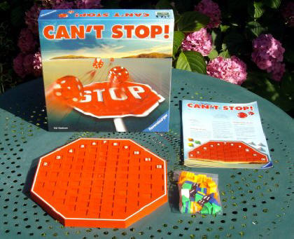 Jeu de dés et de prise de risque, Can’t Stop est semblable dans son principe au Jeu de cochons. À votre tour, vous jetez les dés et réalisez une avance sur le plan de jeu. Si vous arrêtez, vous validez votre avance. Si vous décidez de continuer, vous prenez le risque de perdre cette avance, mais aussi celui de l'accroître considérablement.