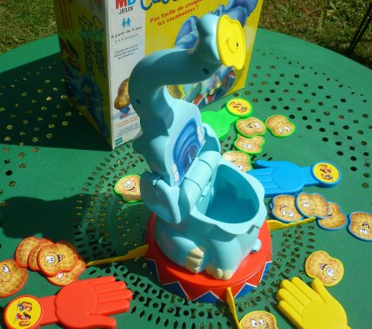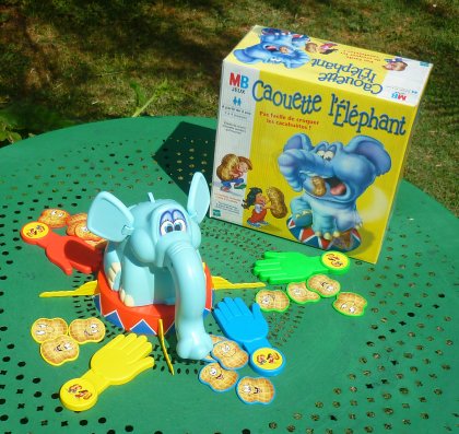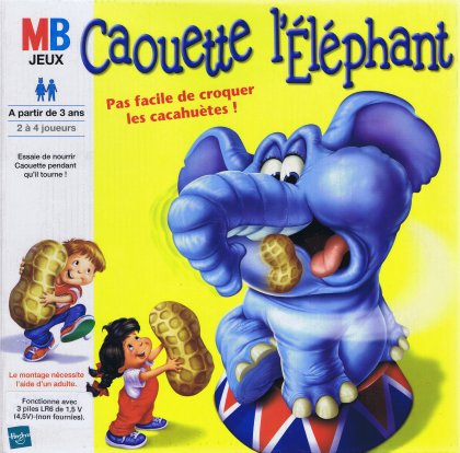 Il a une vraiment une bonne tête, Caouette l’éléphant, et c'est bien volontiers qu'on a envie de lui donner des cacahuètes. L'éléphant tourne inlassablement, cherchant à prendre les cacahuètes qu'on lui offre. Il lève alors sa trompe et, parfois, la cacahuète tombe dans sa bouche.