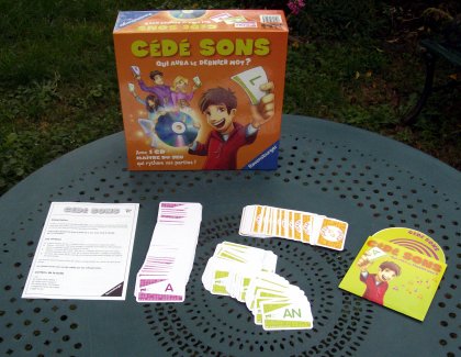 Le but est de former des mots à partir des sons indiqués sur les cartes. L'illustratrice, Émilie Decrock, a l'air agréable à regarder. Il faut bien avouer que son illustration de la boîte est probablement ce que ce jeu a de plus intéressant. Voilà un jeu qu'on devrait rapidement retrouver sur Ebay… |