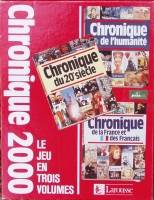 Chronique 2000 - le jeu en trois volumes est un quiz qui ne contient pourtant aucune question. Pour y jouer, il vous faudra posséder dans votre bibliothèque un, deux ou trois tomes de la collection encyclopédique « Chronique », du même éditeur. La boîte ne contient donc que quelques pions, un plan de jeu un peu inutile, et des roulettes pour tirer une année au sort. On vous affirme alors un fait qui s'est passé cette année-là, et vous devez répondre par « Vrai » ou « Faux ». Par exemple, vous tirez 1515, j'ouvre l'encyclopédie, et je vous annonce que cette année-là, il y a eu une bataille importante à Marignan. Vous réfléchissez, répondez « Faux » et vous avez perdu, car c'était vrai : vérifiez si vous voulez. Vous trouvez qu'il n'y a pas besoin de la boîte pour jouer à ce jeu ? Mais alors, de quoi vont vivre les éditeurs et les cartonniers, si tout le monde pense comme vous ? |