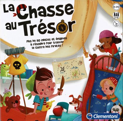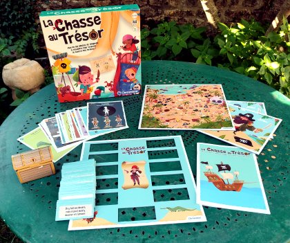Il y a tout ce qu'il faut dans la boîte de La Chasse au trésor pour organiser, devinez quoi, une chasse au trésor ! Le jeu se compose de nombreuses énigmes généralement faciles qui permettent de reconstituer un puzzle pour enfin parvenir au trésor. Le jeu nécessite un adulte (une grande sœur ou un grand frère peut faire l'affaire) pour préparer le parcours et ses énigmes.