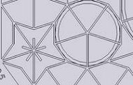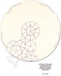 Quelle direction prendre ?Un compromis permit de sortir de l’impasse. Je revins au premier motif, avec uniquement des angles et, comme je l’avais fait avec l’idée d’origine des hexagones, je positionnai un cercle à l’intérieur de chaque forme décagonale. Cette innovation créa des cercles faciles à voir et des étoiles aux angles nets (étoiles dont l’effet visuel fut renforcé par un ajout au centre de lignes radiales, semblables à un astérisque).