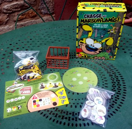 Chasse aux marsupilamis ! reprend le principe du classique gare au loup ou Le Chat et les Souris en y ajoutant un système de trois dés dont le premier peut renvoyer au résultat de l'un des deux autres. Joli matériel.