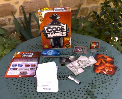 Faire deviner un mot à partir d'un autre, ce n'est pas vraiment nouveau. Le principe a été popularisé par le jeu télévisé Pyramide. créé aux États-Unis en 1973 et adapté en France en 1991. La bonne idée de Codenames, c'est d'opposer deux équipes qui doivent retrouver leurs 8 ou 9 mots parmi 25 sans annoncer ceux des adversaires, ni les mots neutres, ni le mot interdit qui fait immédiatement perdre la partie. Ce mot interdit est appelé l'assassin, le jeu ayant été habillé avec un thème policier-espionnage un peu plaqué. L'autre bonne idée, c'est qu'un indice peut désigner plusieurs mots. Par exemple, en annonçant « OISEAU : 2 », vous pouvez espérer faire trouver à votre équipe « GRUE » et « KIWI ». Le plus important, c'est de s'assurer que l'indice ne peut en aucun cas se rapporter au mot interdit. Si, par exemple, l'assassin est le mot « PLUME », évitez d'annoncer « OISEAU » qui pourrait vous faire perdre la partie. Le tour d'une équipe s'arrête dès qu'elle désigne un mot appartenant aux adversaires ou un mot neutre. Si le premier mot désigné est valide, elle peut continuer ou s'arrêter. Il est même autorisé de désigner un mot de plus que le nombre annoncé avec l'indice, ce qui peut être utile si on devine enfin un mot suggéré plus tôt dans la partie. Le jeu est plus subtil qu'il ne paraît. Parfois, les codeurs ont du mal à trouver un indice miraculeux qui permettrait de désigner plusieurs mots. Heureusement, un sablier est à disposition pour abréger les temps morts. Indispensable.