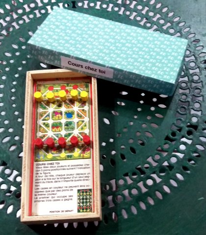 Le but du jeu de Cours chez toi est le même que celui des Dames chinoises et du Jeu de l’Halma : atteindre les cases situées en face de son camp de départ. Ici, pas de sauts mais un tablier avec certains chemins autorisés et d'autres pas. Le plus : un jeu facile à fabriquer.