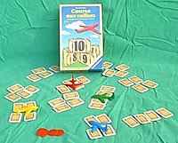 Quarante cartes, représentant des valises, sont marquées de 1 à 10. Elles sont mélangées et réparties face cachée sur la table en dix « aéroports » de quatre valises. Les joueurs, à tour de rôle, vont en avion d'un aéroport à l'autre, pour regarder secrètement le numéro d'une valise. Le but est de dévoiler dans l'ordre les valises de 1 à 10. |