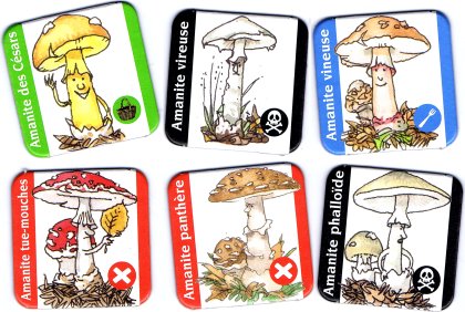 Les joueurs vont dans la forêt, dans le but de rapporter une collection de cinq champignons comestibles de la même espèce. Les champignons sont disposés au départ face cachée, comme au jeu de Memory. Les joueurs déplacent leur pion et vont retourner un champignon, qu'ils montrent à tous. Ils peuvent alors le garder ou le reposer. Mais ils ne peuvent posséder plus de sept champignons en main. Un peu de mémoire, un peu de tactique et de combat (on peut se voler les champignons), un peu d'éducatif… et une réalisation magnifique avec des dessins de Roland Sabatier, qui donnent envie de croquer le jeu. Attention aux champignons mortels, toutefois.