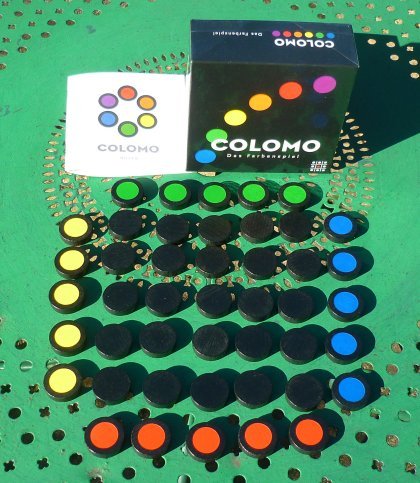 Là où ça se corse, c'est que les pièces, dès qu'elles entrent en jeu, sont retournées face cachée. Il faut donc garder toute sa concentration pour se souvenir en permanence de l'emplacement de ses cinq pièces. Lorsqu'une pièce sort en face, on la révèle. Si elle est de notre couleur, tant mieux pour nous. Si elle est de la couleur d'un adversaire, tant mieux pour lui, car elle est alors considérée comme arrivée pour lui. Les joueurs les plus particulièrement atteints pourront jouer avec six pièces chacun, et un tablier 6 × 6 cases : le matériel le permet. Note : la règle de Colomo - Blinder Hahn est adaptée aux daltoniens, puisqu'il leur suffit de choisir quatre couleurs bien distinctes parmi les six proposées. |