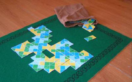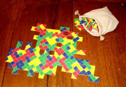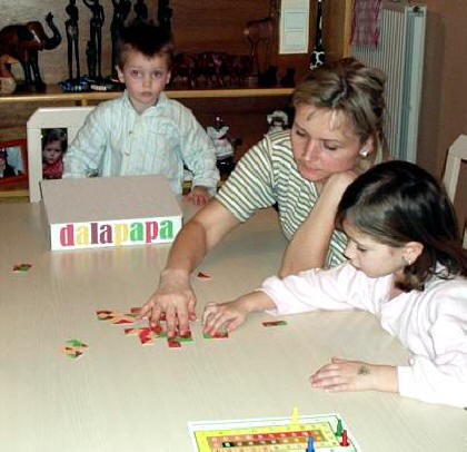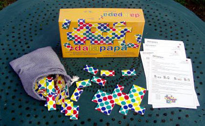 Dans ces moments, il est agréable d'avoir sous la main un petit jeu pas trop « prise de tête », où il faut un peu réfléchir mais pas trop, où une part de hasard raisonnable permet à chacun d'espérer gagner. Chez nous, pour ces moments de détente, c'est le Dalapapa qui s'est peu à peu imposé. C'est quoi ça, le Dalapapa ?Le Dalapapa, c'est d'abord un nom affreux, mais c'est moi qui l'ai choisi. Donc vous n'avez rien à dire ! Non mais alors… Le Dalapapa, c'est aussi un jeu de dominos, de connexion et de pavage très simple d'apprentissage. Il vous faudra une minute pour comprendre la règle, et trois heures pour le fabriquer. Les parties peuvent durer de cinq minutes à une heure, selon la règle choisie et les limites que vous fixez.