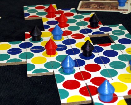 Le score de Noémie est donc de (8 × 1 × 8) + 1 = 65 points Noémie est en pétard, car il aurait suffi qu'elle possède une colonie rouge de 2 points pour gagner. Lorsque Rosalie a mis fin à la partie en posant son cinquième pion colonie, elle l'a fait en posant son dernier pion sur une colonie rouge de 4 points, qui n'était pas si inutile qu'elle le semblait. En effet, lors du dernier tour spécial, limité à une action, Noémie n'a pu prendre possession de cette colonie, qui lui aurait permis de marquer 256 points ! Elle n'avait pas non plus en main de tuile qui lui permette de clore la colonie rouge inachevée qu'elle contrôlait déjà, ce qui lui aurait rapporté la bagatelle de 192 points. Basile, quant à lui, s'est aussitôt replongé dans les règles, pour essayer de comprendre comment il avait pu se faire plumer aussi promptement… |