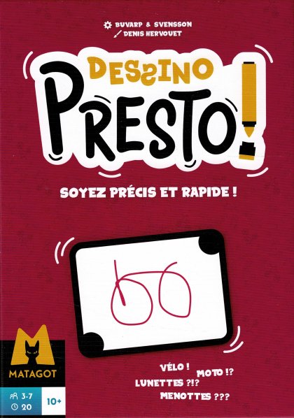 Recette* riche en bonne humeur : Prenez un bon vieux Esquissé ? des familles. Ajoutez-y une généreuse dose de Just One. Saupoudrez d'un soupçon de Next. Incorporez une lichette de Jungle Speed. Mélangez le tout, et dégustez à volonté, régalades désopilantes garanties pour toute la famille ! * Recette de Dessino Presto !