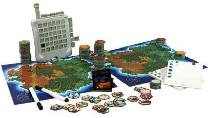 L'idée est originale : habiller un jeu de déduction en jeu d'aventure. Destination trésor, c'est un peu Indiana Jones contre MasterMind ! Le matériel,de très bonne qualité, est important et soigné, et trouve sa place dans une grande boîte bien remplie. Vous êtes un aventurier qui essaye de retrouver un trésor caché sur une île avant son adversaire. Au début, après avoir choisi votre équipement, vous devrez vous situer sur la carte selon les indications de terrain que vous donne l'adversaire (inutile de sortir votre G.P.S.). Dès que vous êtes parvenu à vous situer, la recherche du trésor peut commencer. Il vous faut explorer les forts qui contiennent des renseignements sur l'emplacement du trésor. Ces renseignements sont au nombre de 7 : le type des 6 cases qui entourent le trésor, et le type de terrain où il se trouve. Un huitième fort contient un indice nul. Comme vous êtes deux à courir après les indices, vous devriez en posséder 3 ou 4, ce qui n'est pas suffisant pour se lancer sur la piste du trésor. Il faut donc aller fouiller chacun des sites susceptibles d'abriter le trésor, sans donner trop d'indices à l'adversaire. Si vous ne fouillez que des grottes alors que vous avez vu l'indice « Grotte », soyez certain que votre adversaire finira par comprendre. Il est parfois bien joué de fouiller un site ne correspondant pas aux indices pour embrouiller l'adversaire. La qualité du matériel est à la fois le principal atout du jeu, mais aussi son plus grand défaut. On est vite encombré par toutes ces pièces qui couvrent la table, et les phases de jeu peuvent parfois sembler un peu fastidieuses et répétitives. On regrette aussi que le thème ne soit pas un peu plus poussé. Une tuile ne comporte par exemple que le dessin d'une boussole avec le chiffre 2, ce qui veut dire que si vous n'avez pas la boussole, vous perdez deux tours. Pour donner un peu de vie au jeu, il faudra vous montrer bon comédien en enrobant l'événement : « Tu es complètement perdu dans la jungle. As-tu pensé à prendre une boussole ?… Comme c'est dommage pour toi ! Ton imprévoyance te fait perdre deux précieux tours de jeu, pendant lesquels je vais immanquablement découvrir de précieux indices qui t'auraient bien aidé. Niark Niark (1)… ». (1) : Cette dernière précision est facultative. Toutefois la réelle originalité du jeu et l'habile mélange entre tactique, chance, déduction logique et bluff seront appréciés par tous ceux qui cherchent un bon jeu à deux, qui change des jeux traditionnels. Dommage que la boîte soit si grosse : Destination trésor est un jeu qu'on aurait volontiers emporté en vacances plus souvent, s'il n'avait été aussi encombrant. |