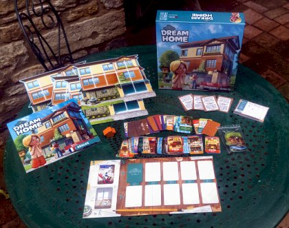 Maison, sucrée maison ! (Home, Sweet Home) 2 à 4 joueurs s'affrontent dans Dream Home pour créer la plus belle maison. La taille et la forme de la maison vous ont été imposées mais vous allez pouvoir rivaliser dans l'aménagement intérieur. À tour de rôle vous allez récupérer une carte pièce et un élément supplémentaire — toit, outil, décor ou assistant — qui seront des aides pour embellir votre pavillon. La maison n'étant pas extensible, il vous faudra choisir quelles pièces installer ou non. Un minimum de confort pratique (une salle de bains et une cuisine, par exemple) seront des plus au moment de l'évaluation finale. La règle est très facilement abordable. Le principal défaut, c'est de ne pouvoir jouer à plus de 4. Heureusement (et malheureusement pour votre bourse), une extension permet, entre autres, de monter jusqu'à 6 joueurs.