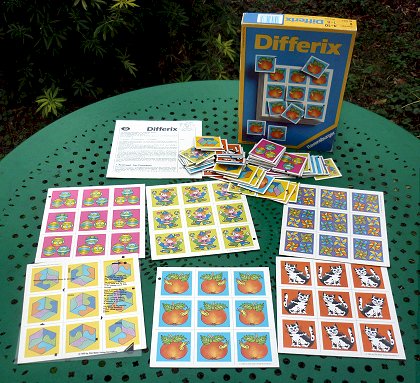 Differix s'adresse aux jeunes enfants. On peut jouer seul ou en compétition, chacun devant alors remplir son carton le plus vite possible, évidemment sans erreur. Une grille transparente d'auto-contrôle permet de vérifier son résultat. À la limite entre le jeu et le matériel pédagogique. |